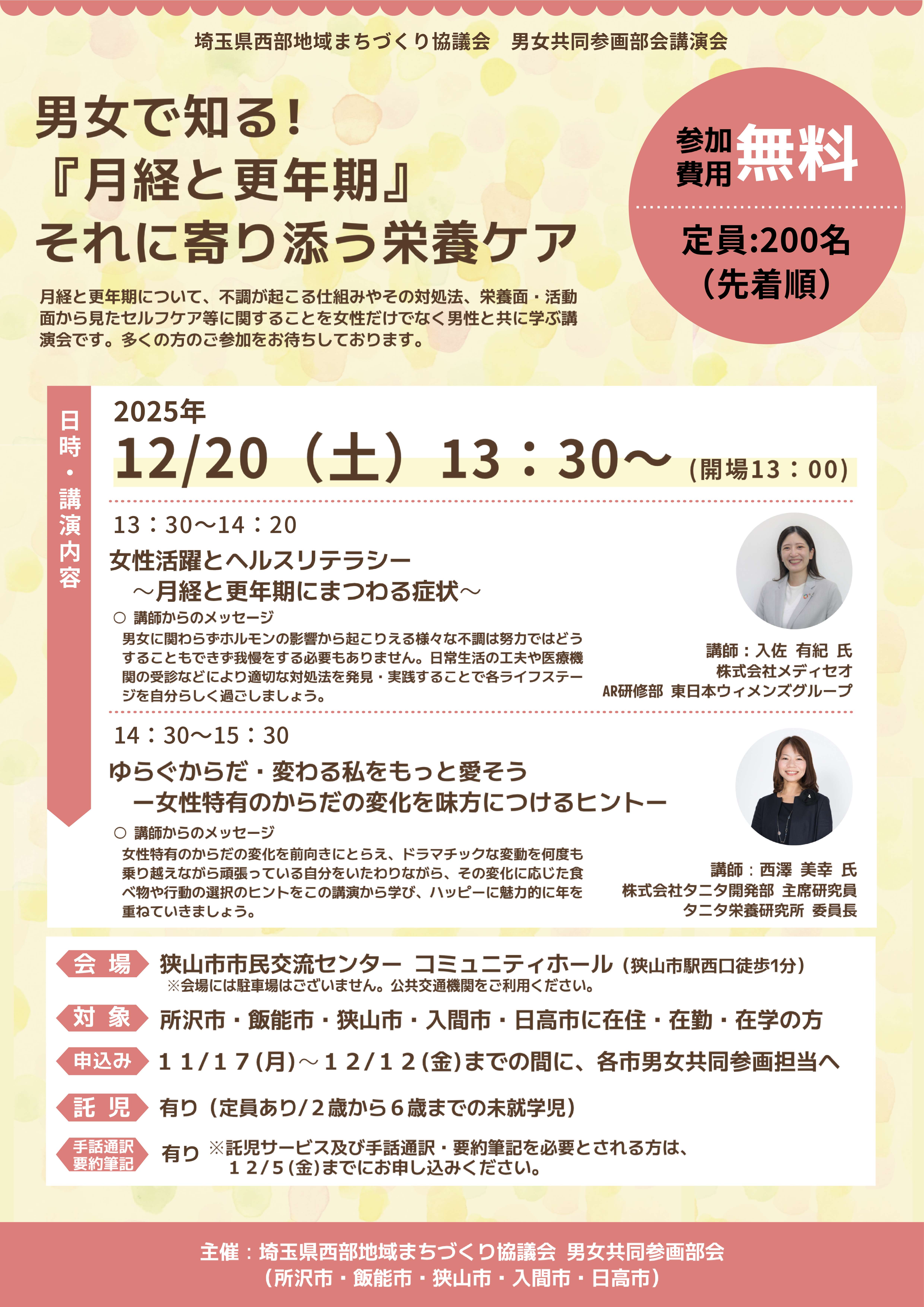 男女で知る!「月経と更年期」それに寄り添う栄養ケア【12月20日開催】